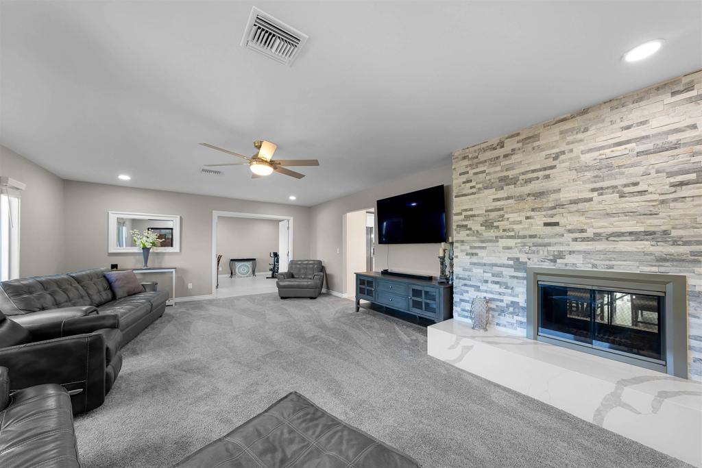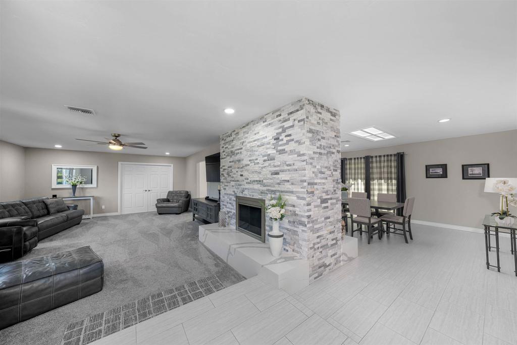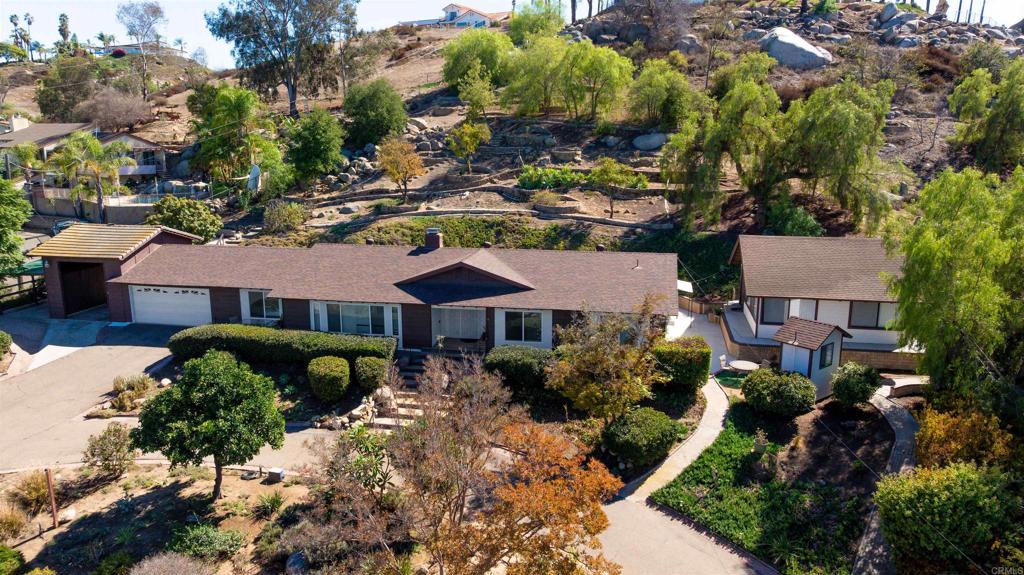 Tucked away at the end of a peaceful cul-de-sac in the desirable Granite Hills area, this beautifully updated single-level home offers comfort, style, and functionality. Step inside to an inviting open floorplan with an updated kitchen featuring stainless steel appliances, a center island, and elegant quartzite counters. A stunning double-sided stone wood-burning fireplace seamlessly connects the living and dining rooms, creating a warm and welcoming atmosphere. The spacious primary suite offers a private ensuite, while additional bedrooms provide plenty of room for family or guests. Thoughtful upgrades include LED recessed lighting, new carpet and paint, newer dual-pane vinyl windows, and paid solar for energy efficiency. Outside, enjoy beautifully landscaped grounds with fruit trees, breathtaking views from the top of the backyard, and multiple cozy nooks tucked into the hillside -- perfect for relaxing or entertaining. A 500 sqf detached guest house with soaring wood-beamed ceilings offers endless possibilities for a home office, gym, studio, or multigenerational living. Additional features include an RV carport and thoughtful outdoor spaces that make the most of the property's scenic setting. Don't miss out on this amazing home! Call now!