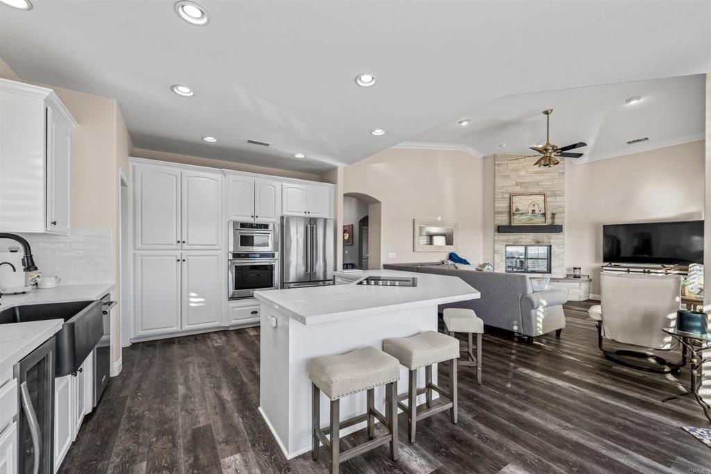 Welcome to this exceptional 4-bedroom, 3-bathroom modern farmhouse estate in Palo Verde Ranch, where over $500,000 in recent renovations meet breathtaking panoramic views and elevated country living. Blending classic charm with modern upgrades, this home offers the perfect balance of style, comfort, and functionality. Designed with a highly sought-after layout, the home features a primary suite on the first floor with its own fireplace, along with an additional full bedroom and bathroom downstairs--ideal for guests or multi-generational living. Upstairs, you'll find a spacious office loft, two additional bedrooms, and a full bathroom, offering flexibility for today's lifestyle. Inside, the home has been beautifully transformed with vinyl plank flooring, new carpet, fresh interior and exterior paint, and a fully remodeled kitchen featuring quartz countertops, a farmhouse sink, modern fixtures, and a brand-new backsplash. A standout feature is the custom walk-in pantry with its own sink and quartz countertops, combining both convenience and elevated design. All three bathrooms have been completely renovated, and the custom primary closet adds both elegance and functionality. A new fireplace and shutters throughout enhance the home's warm, inviting aesthetic. Built for efficiency and peace of mind, the property includes 55 paid-off solar panels, a high-producing well (49 gallons per minute) with a 5,000-gallon holding tank, soft water system, and reverse osmosis drinking water. Fire-conscious upgrades such as fire-approved windows, fireproof rain gutters, and brush clearance provide added security. Step outside to your private retreat featuring gorgeous lush landscaping with mature trees, an avocado tree, a lemon tree, a lime tree, and beautiful flowers, along with a newly resurfaced Pebble Sheen pool with solar heating, propane, and wireless controls, an outdoor shower, and enhanced lighting. The property also offers RV parking with full hookups and dumping station, two fully powered sheds, and a garage solar hookup--perfect for both convenience and recreation. Located in the highly desirable Palo Verde Ranch community, this home offers space, privacy, and access to one of Alpine's most sought-after neighborhoods.