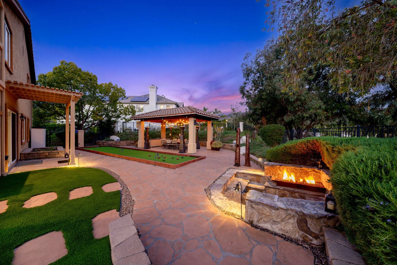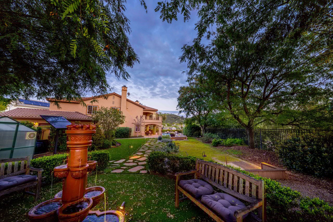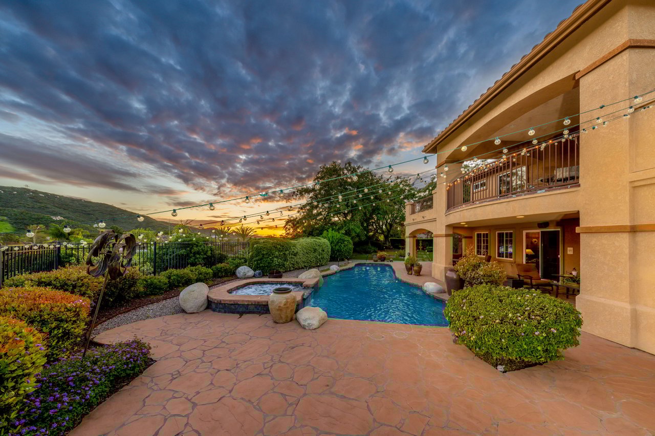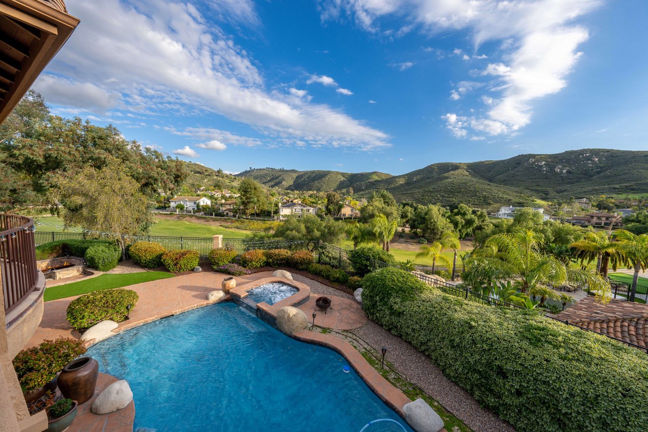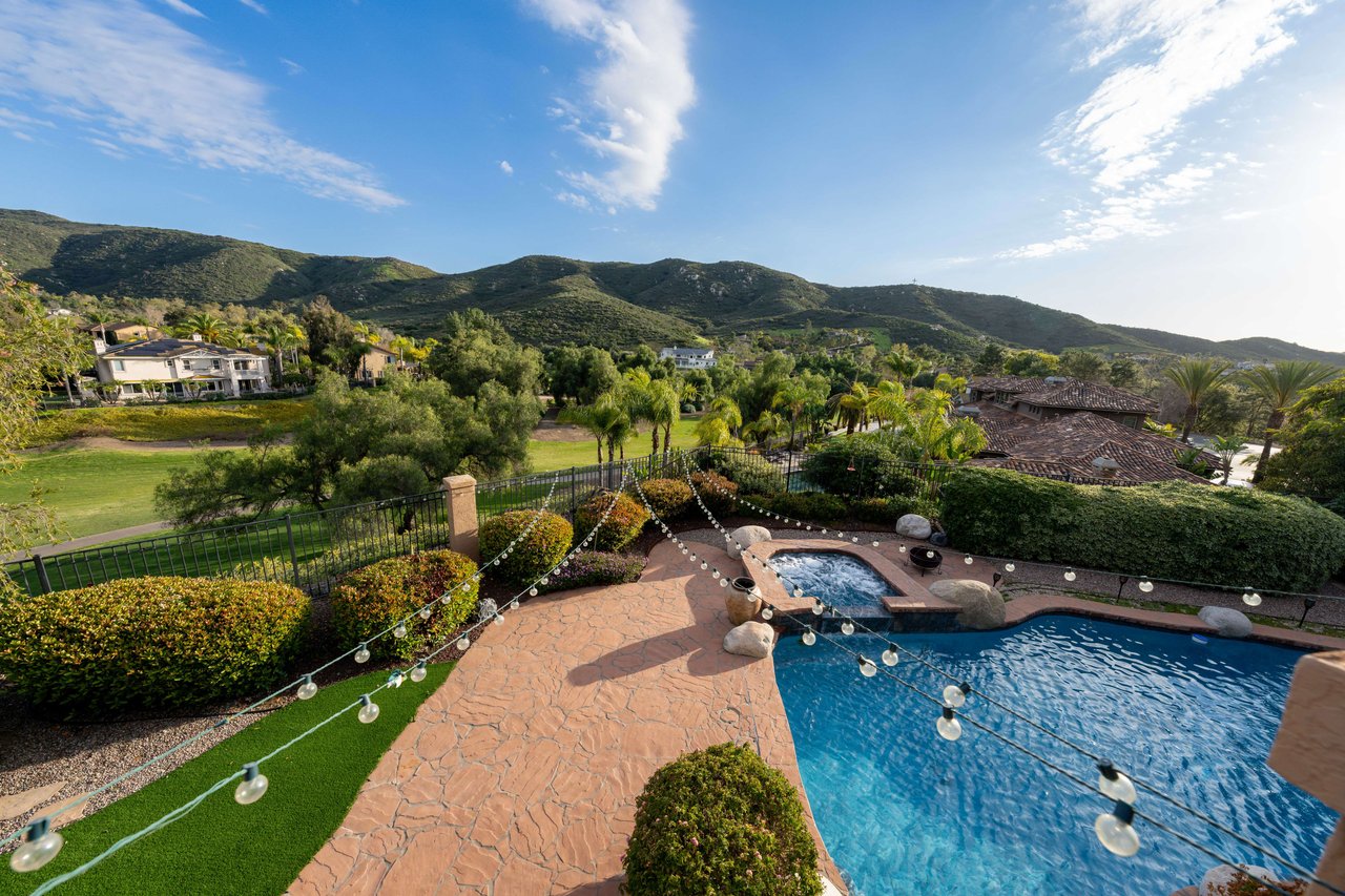 Elegantly situated in the highly sought after Steele Canyon Estates, this exquisite residence offers a luxurious lifestyle on the golf course. Nestled on an expansive oversized premium lot, this stunning property in Rancho San Diego boasts unparalleled features and amenities. Step inside to discover an inviting open floor plan with high ceilings gracing the living room, creating an airy atmosphere. The heart of the home is the spacious kitchen, complete with an oversized island, gleaming stainless steel appliances, and a convenient walk-in pantry. Seamlessly flowing into the family room adorned with a cozy fireplace, this space is ideal for both casual gatherings and formal entertaining. Retreat to the opulent primary suite featuring a sitting room, fireplace, and a generous walk-in closet. Pamper yourself in the luxurious ensuite bath before stepping onto the huge deck to revel in the panoramic vistas. Teak wood flooring, recessed lighting, and an office add to the allure of this residence. With a 3-car garage and paid solar panels, convenience and sustainability harmonize effortlessly in this remarkable residence. Step outside to discover an entertainer’s paradise, where a covered patio, sparkling pool, soothing spa, and built-in BBQ await. Challenge friends to a game of bocce ball or horseshoes, surrounded by lush landscaping and the tranquility of nature. Embrace the California sunshine in the private greenhouse or unwind by the sunken fire pit. Outdoor speakers set the mood for every occasion while enjoying the great views that surround you. Don’t miss the opportunity to experience the ultimate in luxurious living in this private and peaceful enclave.