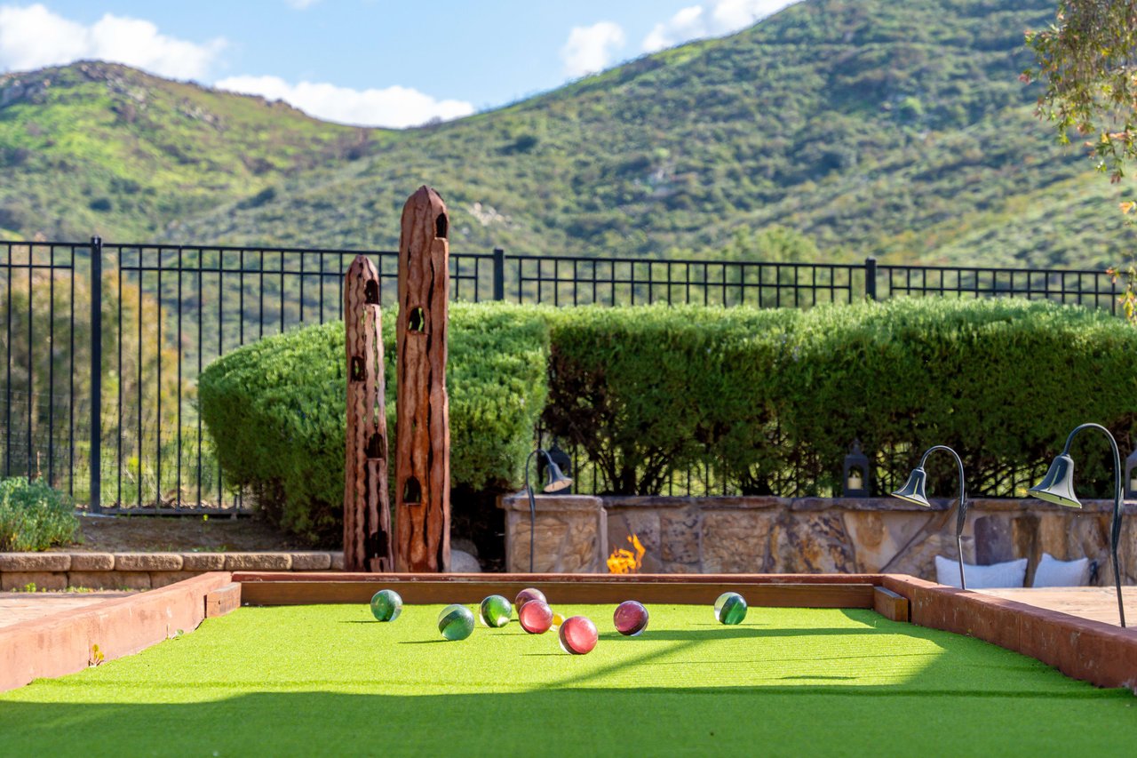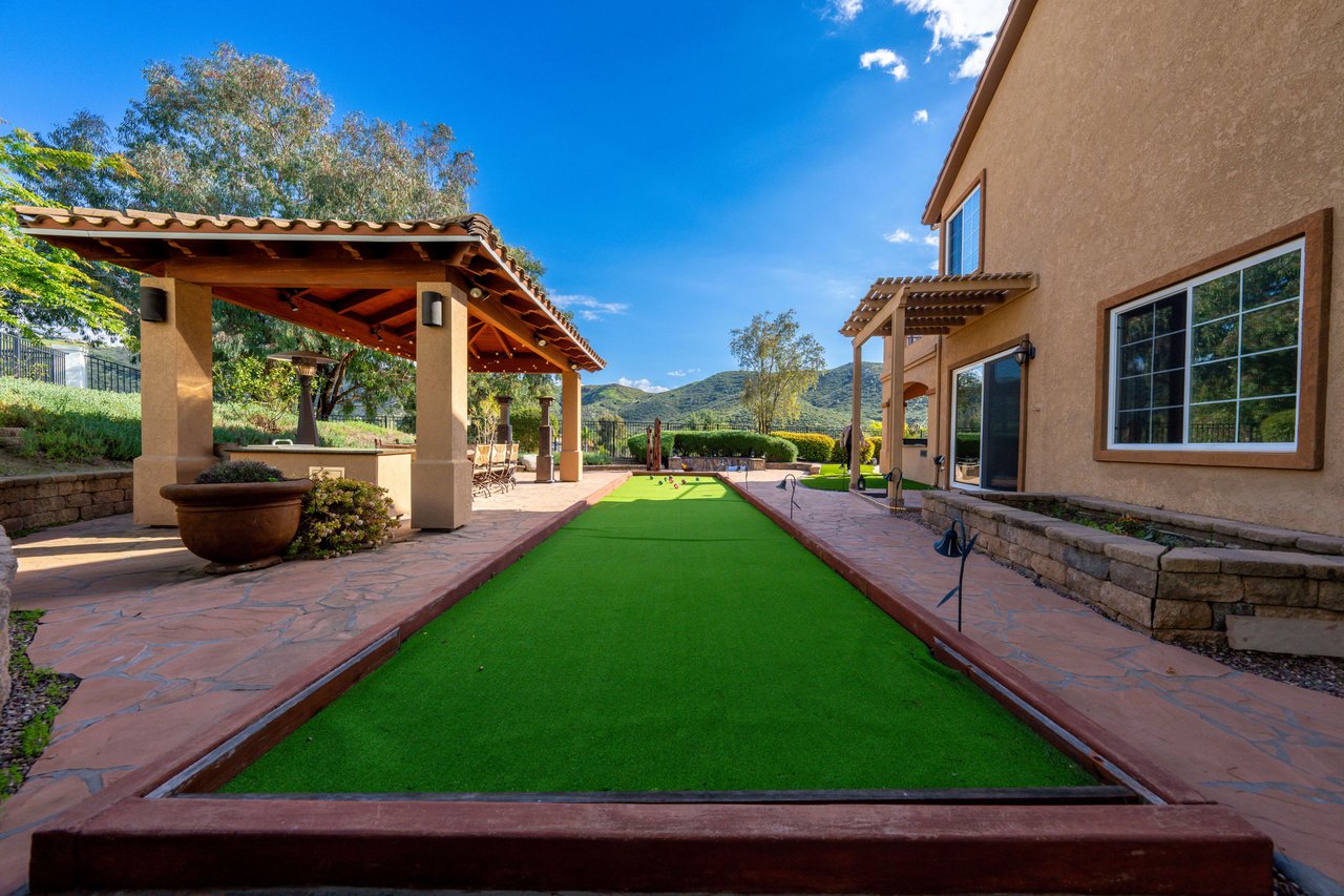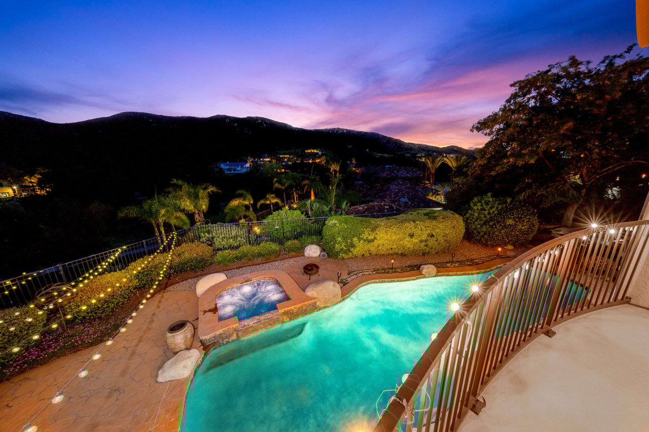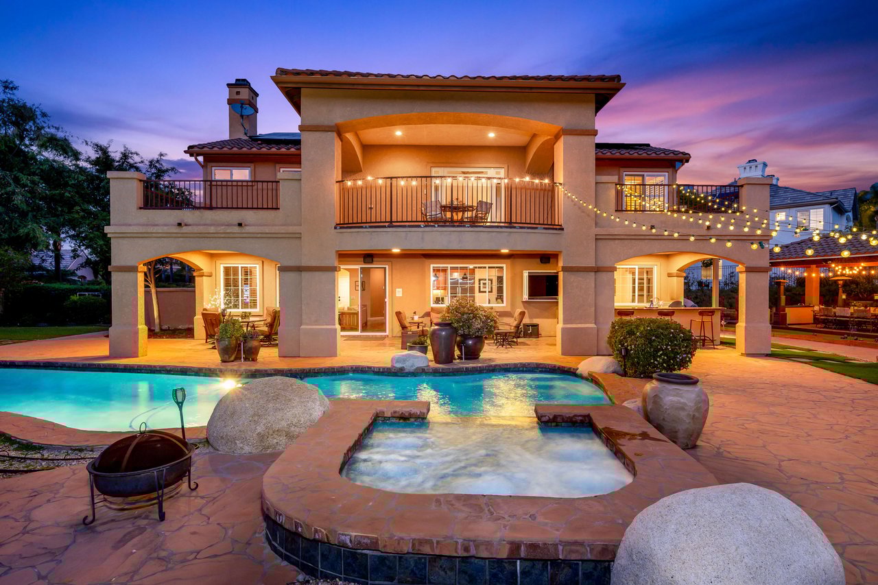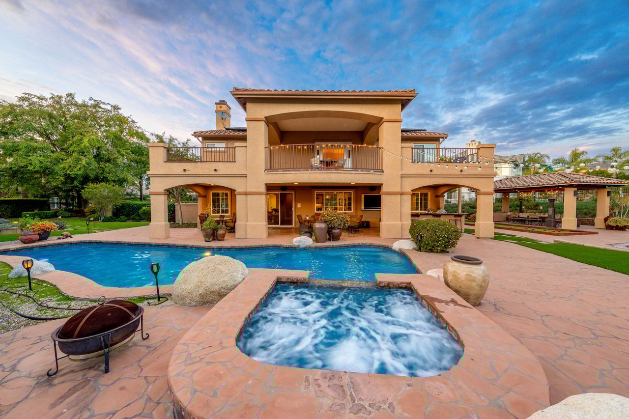 Elegantly situated in the highly sought after Steele Canyon Estates, this exquisite residence offers a luxurious lifestyle on the golf course. Nestled on an expansive oversized premium lot, this stunning property in Rancho San Diego boasts unparalleled features and amenities. Step inside to discover an inviting open floor plan with high ceilings gracing the living room, creating an airy atmosphere. The heart of the home is the spacious kitchen, complete with an oversized island, gleaming stainless steel appliances, and a convenient walk-in pantry. Seamlessly flowing into the family room adorned with a cozy fireplace, this space is ideal for both casual gatherings and formal entertaining. Retreat to the opulent primary suite featuring a sitting room, fireplace, and a generous walk-in closet. Pamper yourself in the luxurious ensuite bath before stepping onto the huge deck to revel in the panoramic vistas. Teak wood flooring, recessed lighting, and an office add to the allure of this residence. With a 3-car garage and paid solar panels, convenience and sustainability harmonize effortlessly in this remarkable residence. Step outside to discover an entertainer’s paradise, where a covered patio, sparkling pool, soothing spa, and built-in BBQ await. Challenge friends to a game of bocce ball or horseshoes, surrounded by lush landscaping and the tranquility of nature. Embrace the California sunshine in the private greenhouse or unwind by the sunken fire pit. Outdoor speakers set the mood for every occasion while enjoying the great views that surround you. Don’t miss the opportunity to experience the ultimate in luxurious living in this private and peaceful enclave.