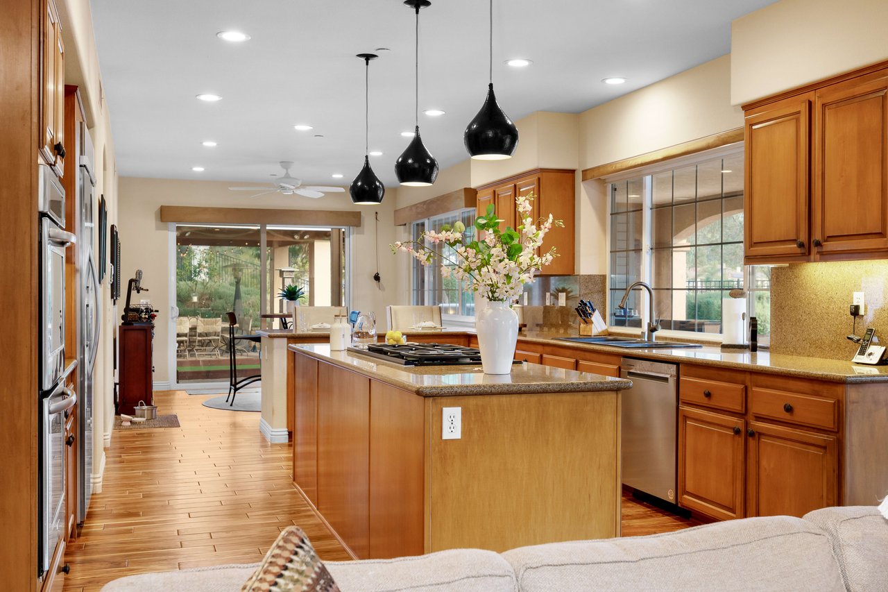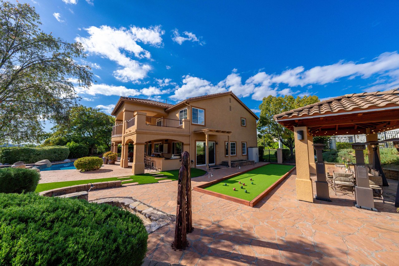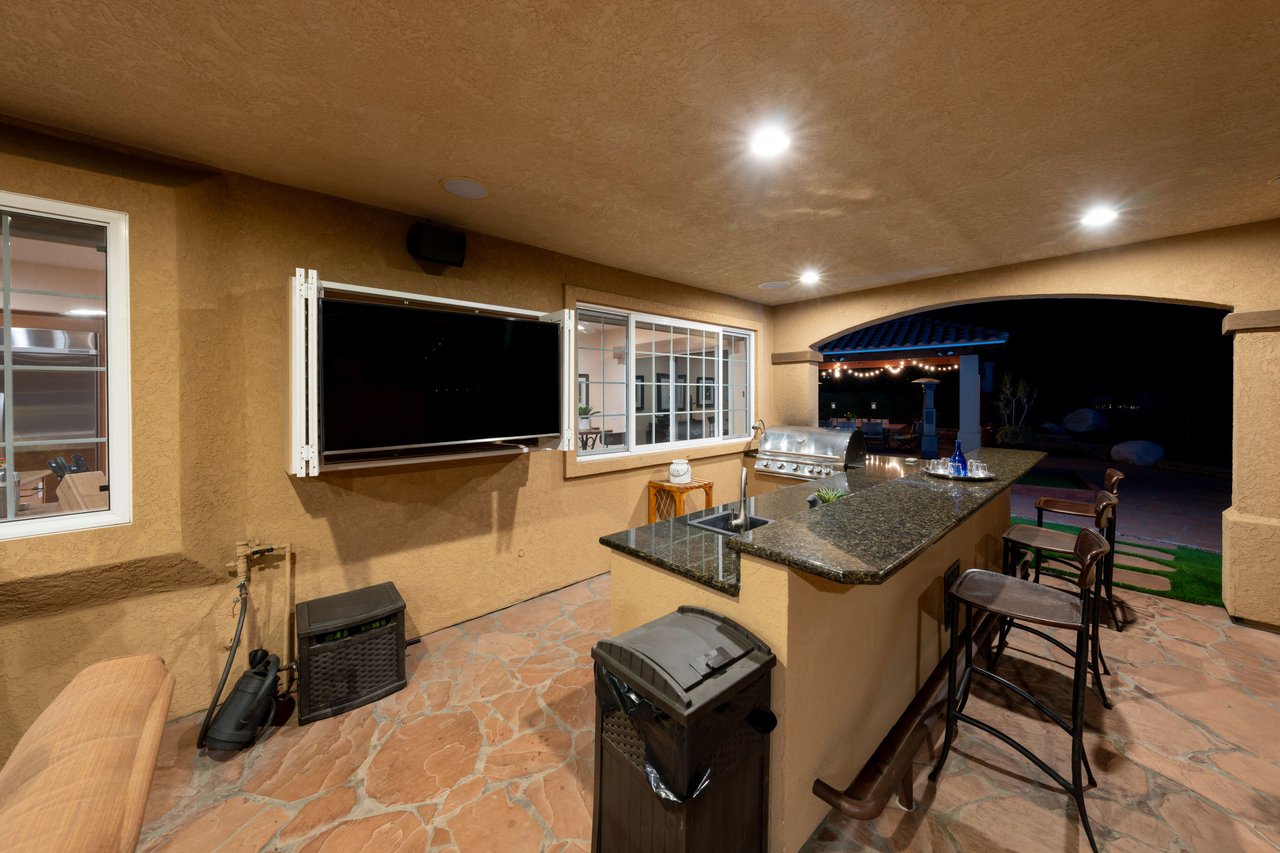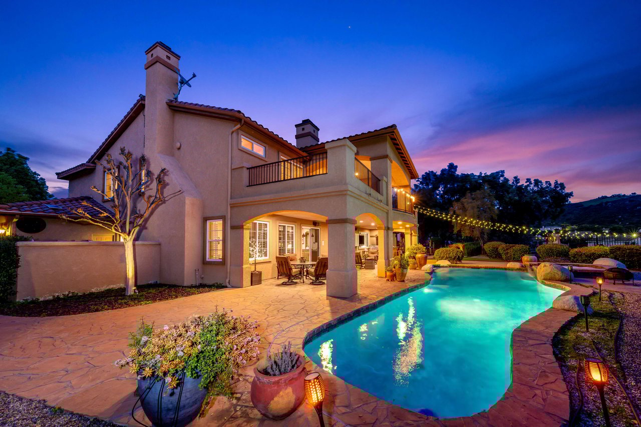 Elegantly situated in the highly sought after Steele Canyon Estates, this exquisite residence offers a luxurious lifestyle on the golf course. Nestled on an expansive oversized premium lot, this stunning property in Rancho San Diego boasts unparalleled features and amenities. Step inside to discover an inviting open floor plan with high ceilings gracing the living room, creating an airy atmosphere. The heart of the home is the spacious kitchen, complete with an oversized island, gleaming stainless steel appliances, and a convenient walk-in pantry. Seamlessly flowing into the family room adorned with a cozy fireplace, this space is ideal for both casual gatherings and formal entertaining. Retreat to the opulent primary suite featuring a sitting room, fireplace, and a generous walk-in closet. Pamper yourself in the luxurious ensuite bath before stepping onto the huge deck to revel in the panoramic vistas. Teak wood flooring, recessed lighting, and an office add to the allure of this residence. With a 3-car garage and paid solar panels, convenience and sustainability harmonize effortlessly in this remarkable residence. Step outside to discover an entertainer’s paradise, where a covered patio, sparkling pool, soothing spa, and built-in BBQ await. Challenge friends to a game of bocce ball or horseshoes, surrounded by lush landscaping and the tranquility of nature. Embrace the California sunshine in the private greenhouse or unwind by the sunken fire pit. Outdoor speakers set the mood for every occasion while enjoying the great views that surround you. Don’t miss the opportunity to experience the ultimate in luxurious living in this private and peaceful enclave.