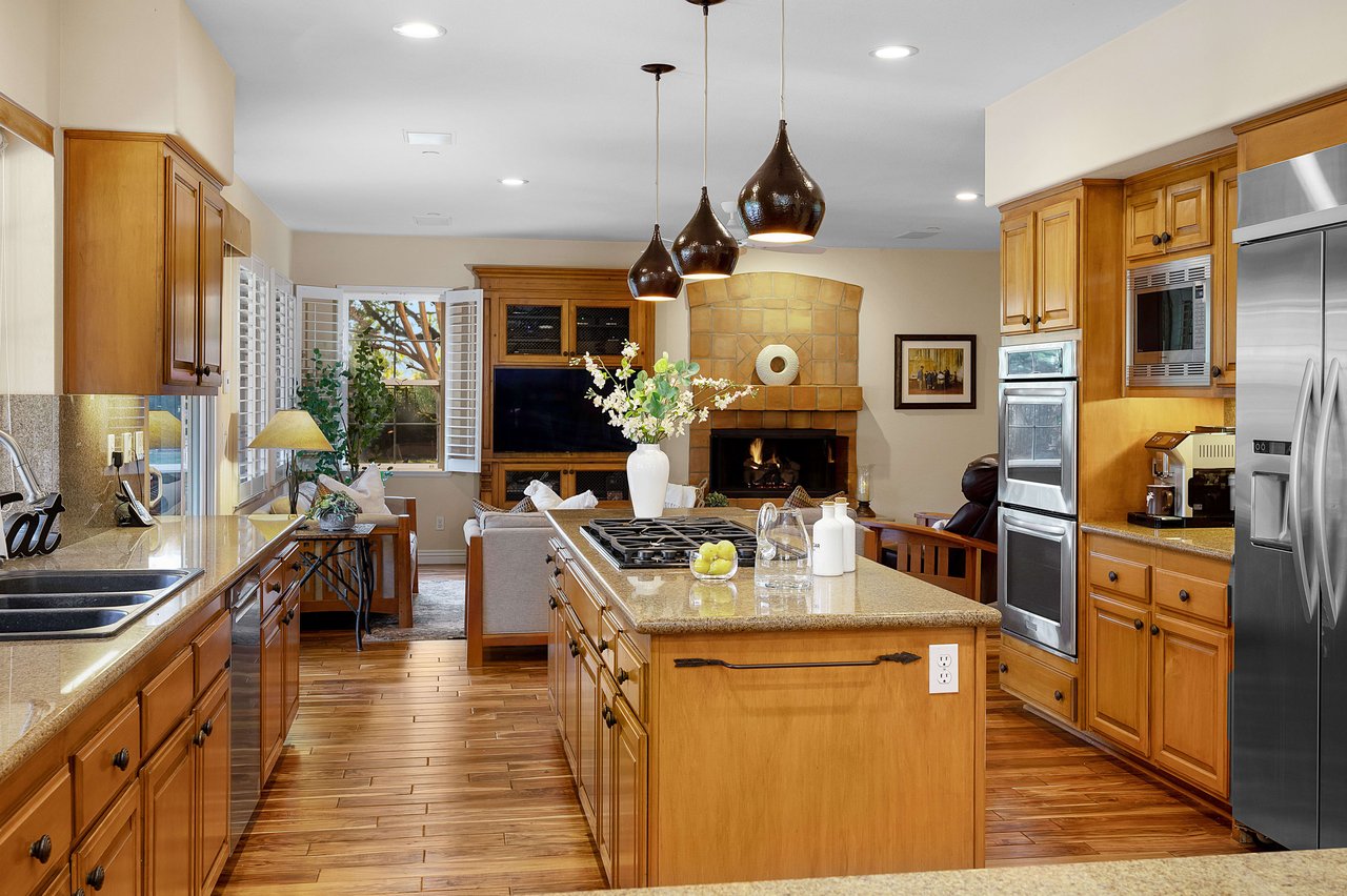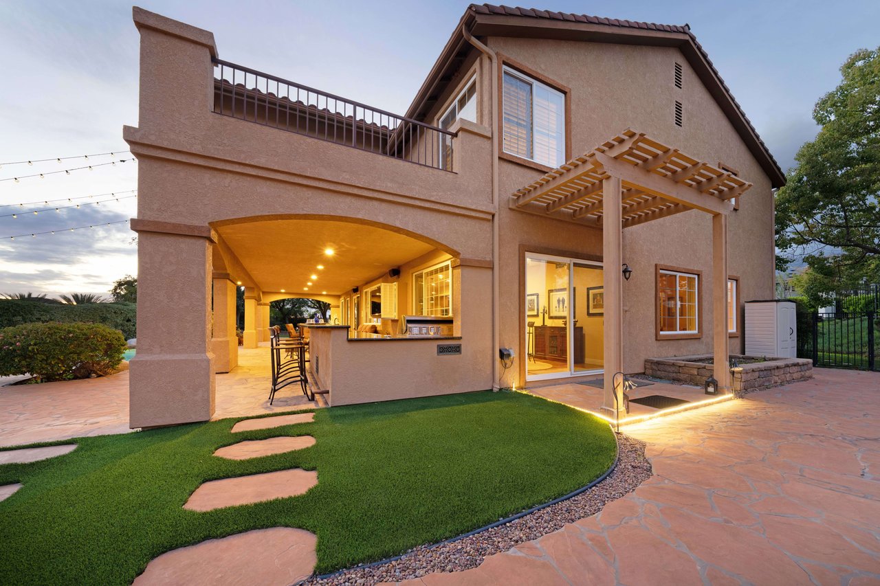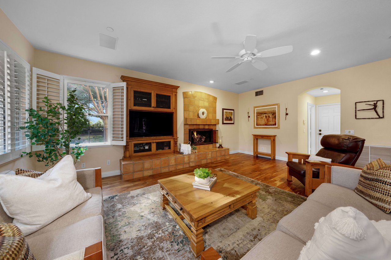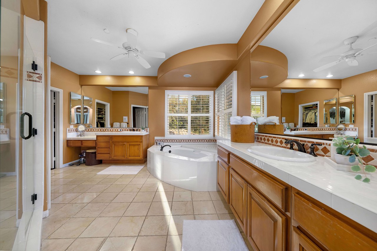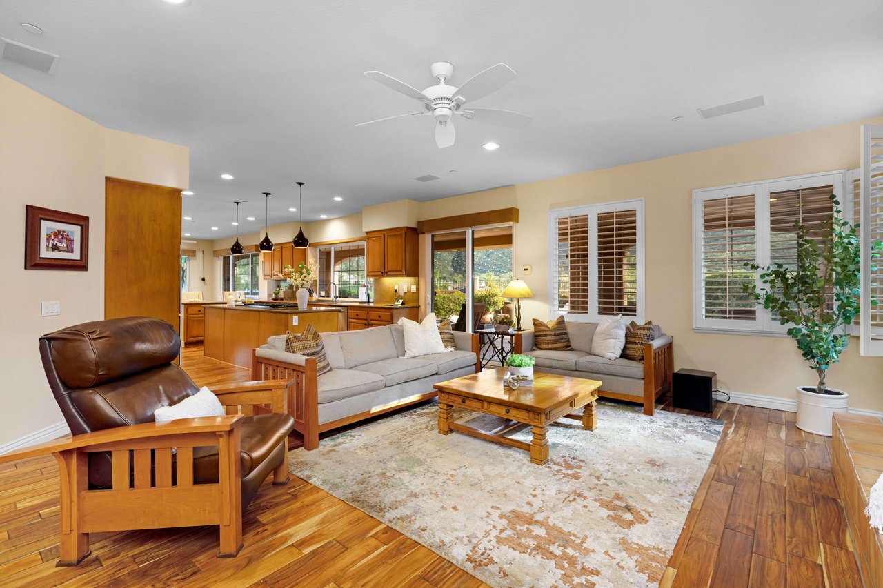 Elegantly situated in the highly sought after Steele Canyon Estates, this exquisite residence offers a luxurious lifestyle on the golf course. Nestled on an expansive oversized premium lot, this stunning property in Rancho San Diego boasts unparalleled features and amenities. Step inside to discover an inviting open floor plan with high ceilings gracing the living room, creating an airy atmosphere. The heart of the home is the spacious kitchen, complete with an oversized island, gleaming stainless steel appliances, and a convenient walk-in pantry. Seamlessly flowing into the family room adorned with a cozy fireplace, this space is ideal for both casual gatherings and formal entertaining. Retreat to the opulent primary suite featuring a sitting room, fireplace, and a generous walk-in closet. Pamper yourself in the luxurious ensuite bath before stepping onto the huge deck to revel in the panoramic vistas. Teak wood flooring, recessed lighting, and an office add to the allure of this residence. With a 3-car garage and paid solar panels, convenience and sustainability harmonize effortlessly in this remarkable residence. Step outside to discover an entertainer’s paradise, where a covered patio, sparkling pool, soothing spa, and built-in BBQ await. Challenge friends to a game of bocce ball or horseshoes, surrounded by lush landscaping and the tranquility of nature. Embrace the California sunshine in the private greenhouse or unwind by the sunken fire pit. Outdoor speakers set the mood for every occasion while enjoying the great views that surround you. Don’t miss the opportunity to experience the ultimate in luxurious living in this private and peaceful enclave.