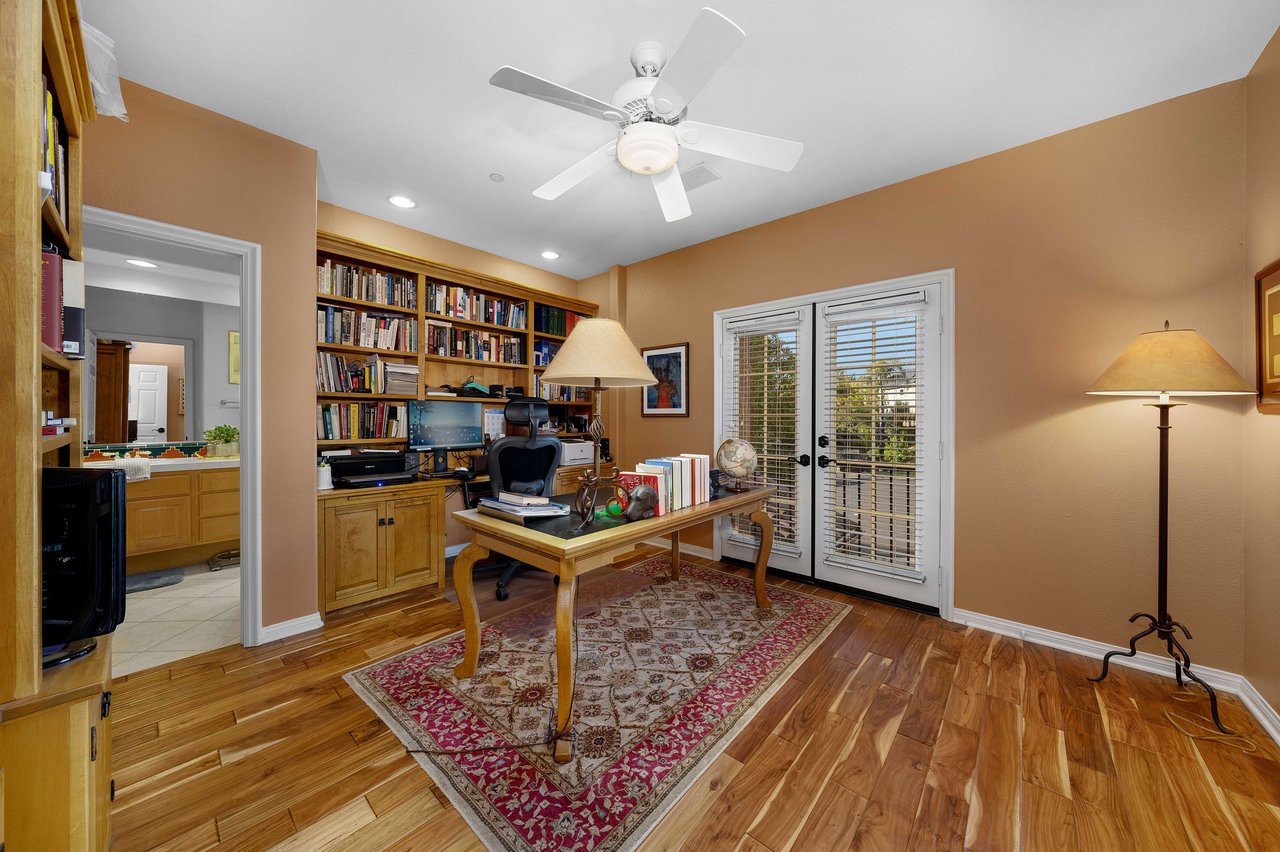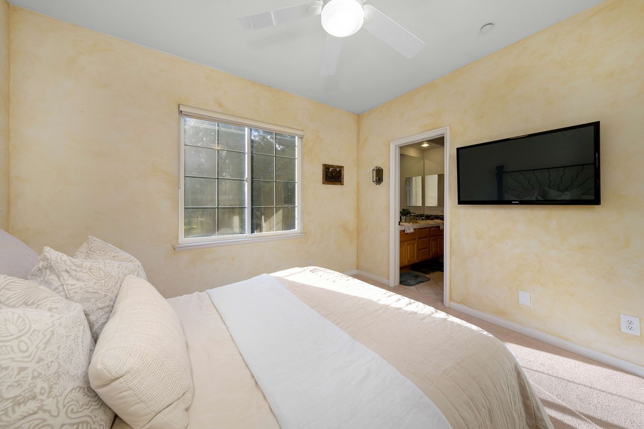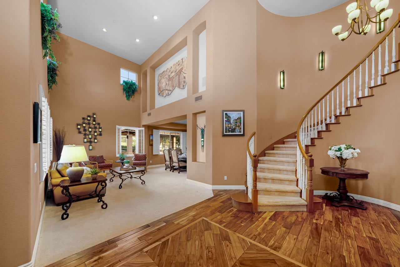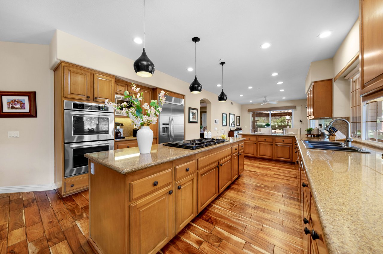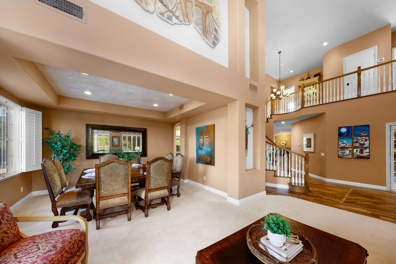 Elegantly situated in the highly sought after Steele Canyon Estates, this exquisite residence offers a luxurious lifestyle on the golf course. Nestled on an expansive oversized premium lot, this stunning property in Rancho San Diego boasts unparalleled features and amenities. Step inside to discover an inviting open floor plan with high ceilings gracing the living room, creating an airy atmosphere. The heart of the home is the spacious kitchen, complete with an oversized island, gleaming stainless steel appliances, and a convenient walk-in pantry. Seamlessly flowing into the family room adorned with a cozy fireplace, this space is ideal for both casual gatherings and formal entertaining. Retreat to the opulent primary suite featuring a sitting room, fireplace, and a generous walk-in closet. Pamper yourself in the luxurious ensuite bath before stepping onto the huge deck to revel in the panoramic vistas. Teak wood flooring, recessed lighting, and an office add to the allure of this residence. With a 3-car garage and paid solar panels, convenience and sustainability harmonize effortlessly in this remarkable residence. Step outside to discover an entertainer’s paradise, where a covered patio, sparkling pool, soothing spa, and built-in BBQ await. Challenge friends to a game of bocce ball or horseshoes, surrounded by lush landscaping and the tranquility of nature. Embrace the California sunshine in the private greenhouse or unwind by the sunken fire pit. Outdoor speakers set the mood for every occasion while enjoying the great views that surround you. Don’t miss the opportunity to experience the ultimate in luxurious living in this private and peaceful enclave.