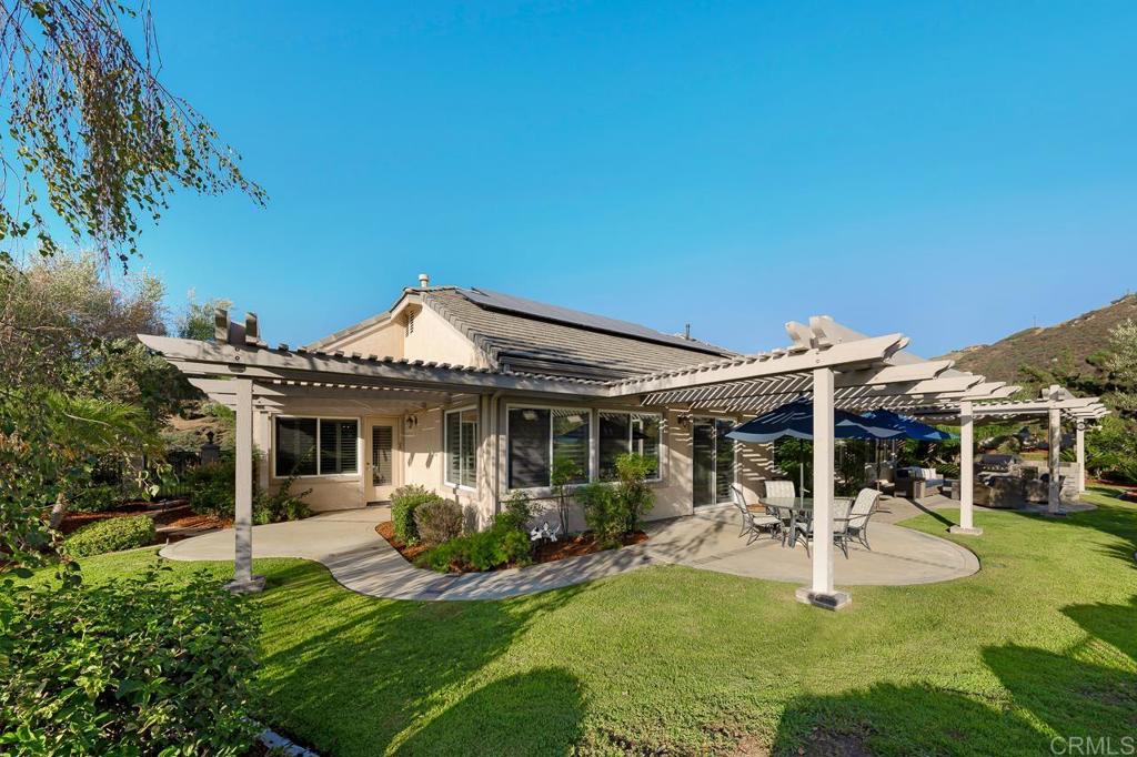 Nestled in the heart of the highly sought-after Steele Canyon Estates, this stunning single-level home offers a lifestyle of luxury and relaxation. Overlooking the scenic Vineyard Golf Course, with breathtaking views of holes 6 and 7, this property is the perfect blend of elegance and comfort. Step inside to an open floor plan adorned with recessed lighting, where the spacious living room beckons with its cozy updated fireplace and custom wine rack/display case--perfect for entertaining or unwinding after a day on the course. The kitchen boasts granite countertops, a Subzero refrigerator, a Bosch dishwasher, and a large island. Multiple roll-out shelves offer ample storage, and two built-in wine refrigerators ensure your collection is always at the perfect temperature. This space seamlessly flows into the inviting family room, complete with an updated fireplace featuring glass doors and fire rock. The expansive primary bedroom is a private retreat, featuring a serene sitting area with a fireplace, and an updated primary bath with dual walk-in closets for ultimate convenience. An additional office space offers the perfect spot for productivity or creativity. Energy-efficient upgrades include paid solar panels and a Tesla back-up battery, ensuring peace of mind. Two updated furnaces and air conditioners provide year-round comfort, while the home's classic plantation shutters enhance both style and privacy. The washer and dryer will remain, making your move even easier. Additional features include a spacious 4-car tandem garage with built-in cabinets for extra storage, and beautifully landscaped grounds designed for outdoor enjoyment. Relax in shaded seating areas, host gatherings around the built-in BBQ, or simply enjoy the lush greenery that frames your view of the golf course. This home is a true gem in Steele Canyon Estates, offering unparalleled golf course views and luxurious living in every detail. A single-level home on the golf course in Steele Canyon is a rare find, don't miss this extraordinary opportunity! Call now!