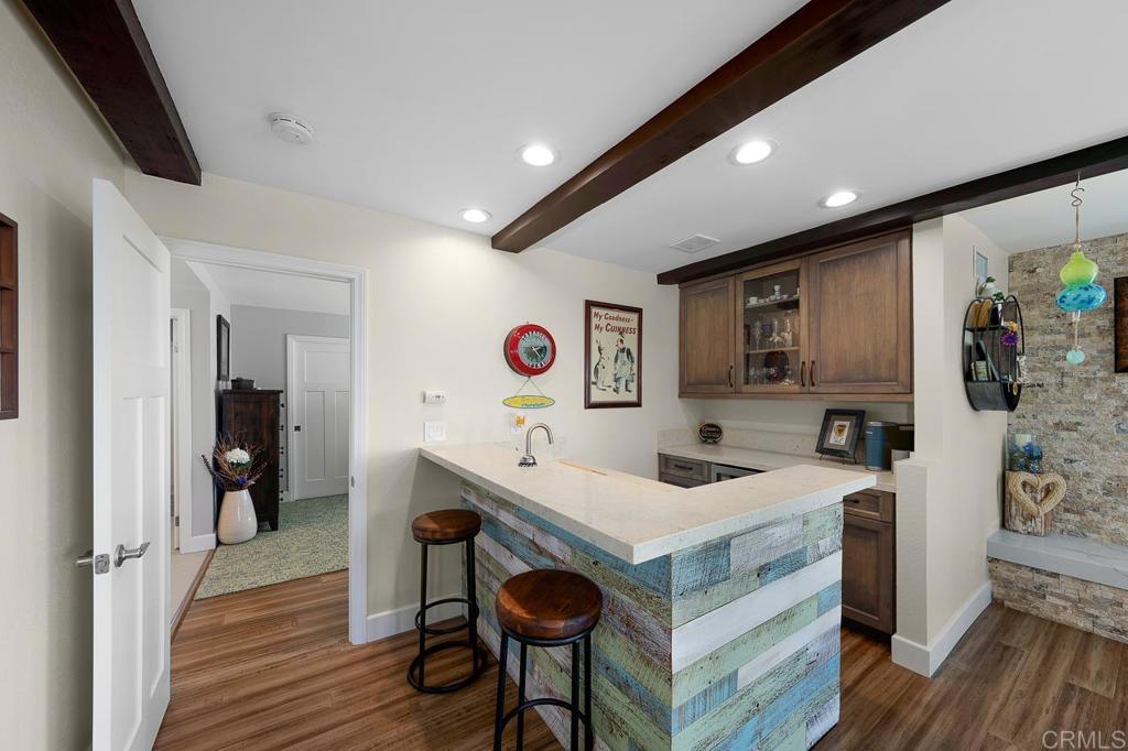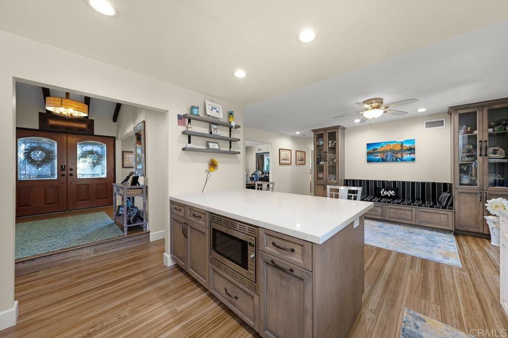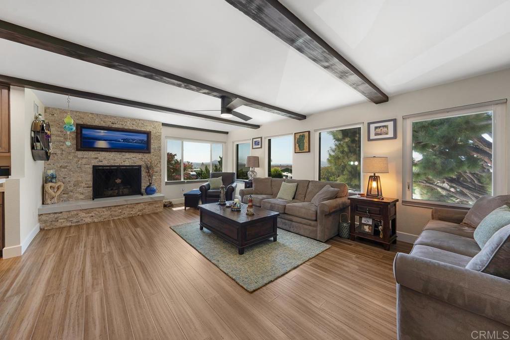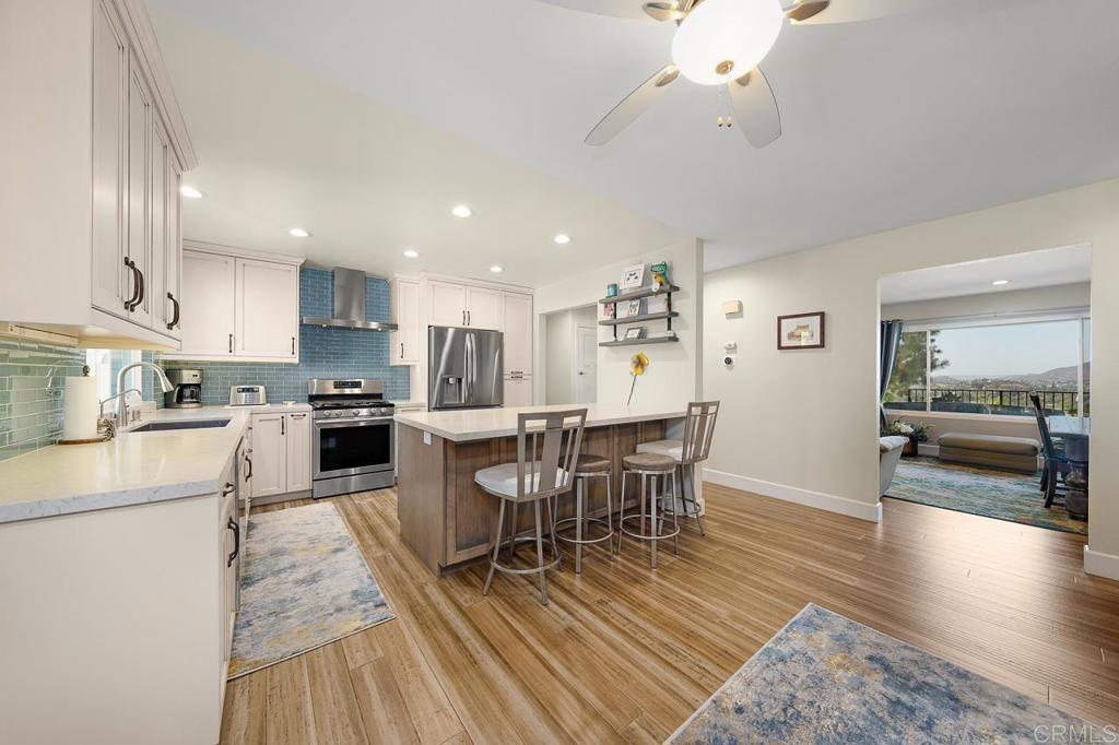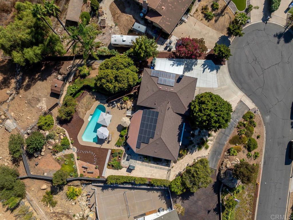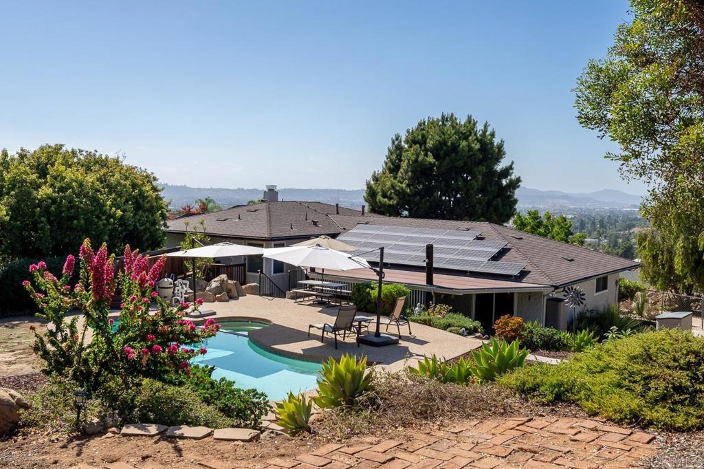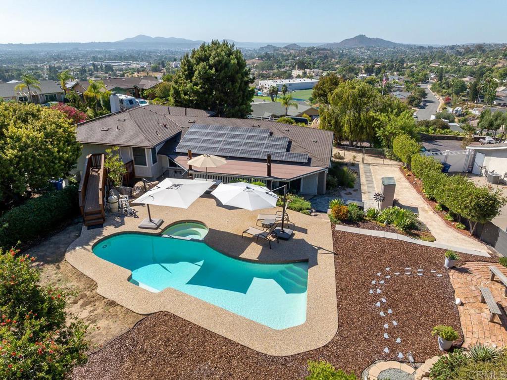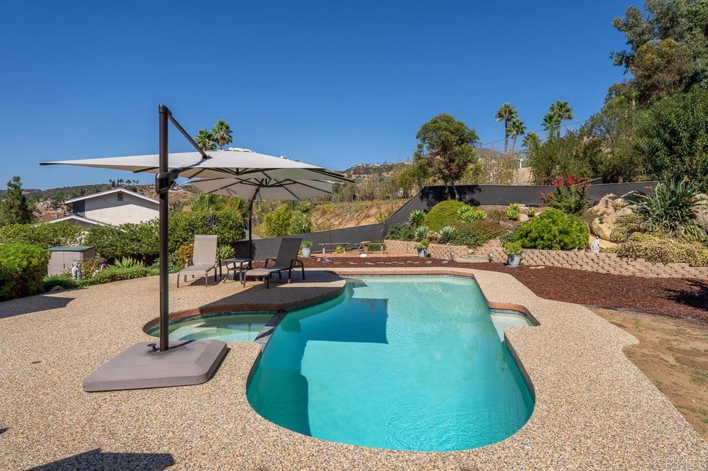 Nestled in a highly sought-after neighborhood, this beautifully updated home is perfectly positioned next to Shadow Mountain Community Church on a quiet cul-de-sac. Step inside to discover new flooring throughout and fresh paint both inside and out, creating a bright and welcoming atmosphere. The spacious family room boasts a cozy fireplace and a convenient wet bar, perfect for entertaining. The updated kitchen features stunning Quartz countertops, a large island, and sleek stainless steel appliances, making it a chef's dream. The primary bedroom is generously sized with a walk-in closet and an updated bath, offering a private retreat. Additional spacious bedrooms ensure comfort for family or guests. Outdoors, enjoy your very own oasis with a pool and spa, shaded seating, and a large deck at the front of the home, ideal for relaxation. Modern conveniences include new A/C, a 2-car garage and carport, and paid solar for energy efficiency. The beautifully landscaped yard enhances the home's curb appeal, while the elevated location provides great views. This home combines luxury, comfort, and sustainability in an unbeatable location--an opportunity you won't want to miss! Call now!