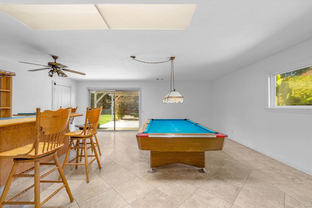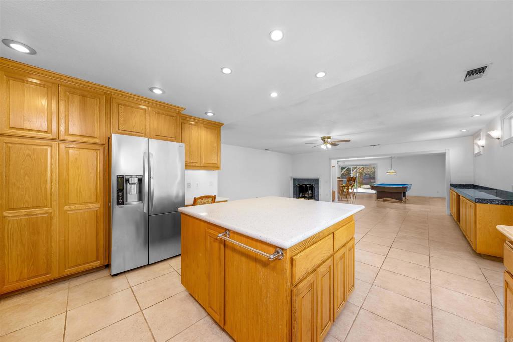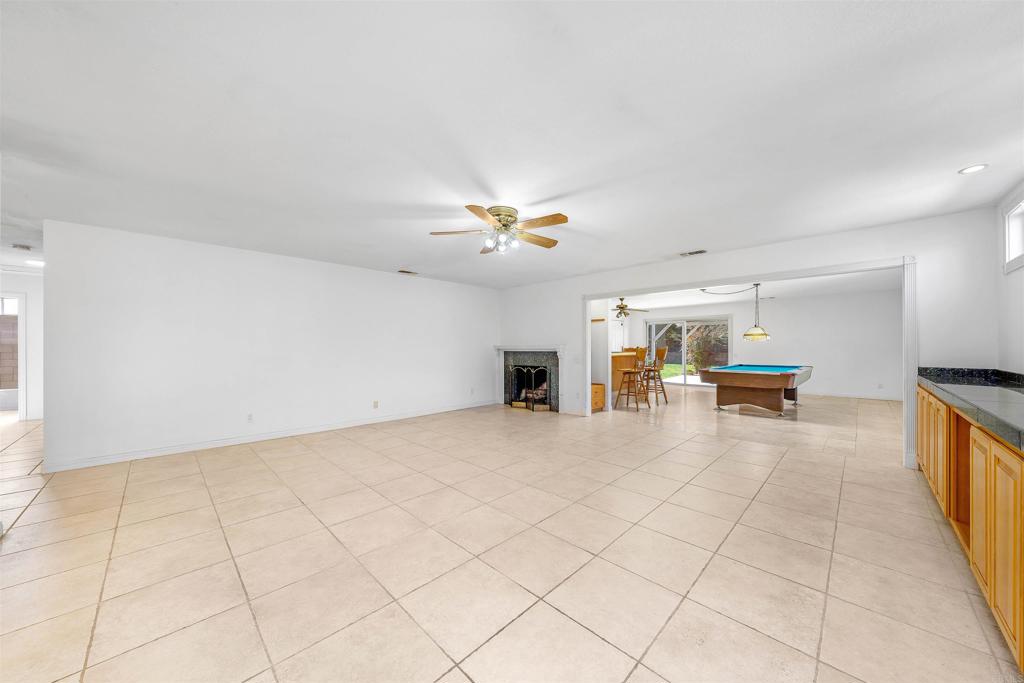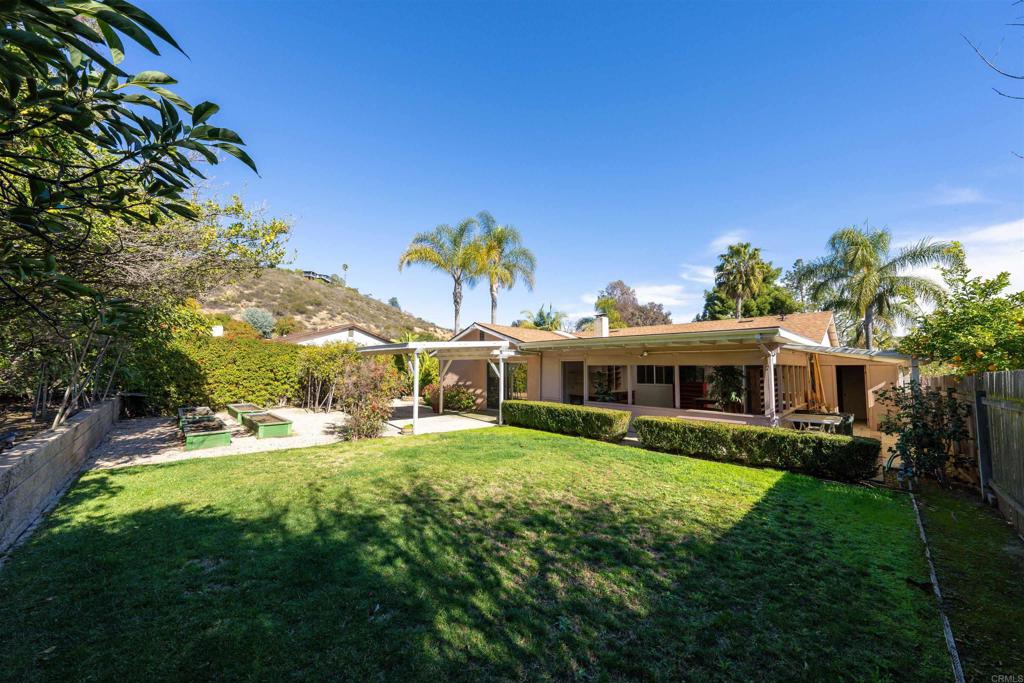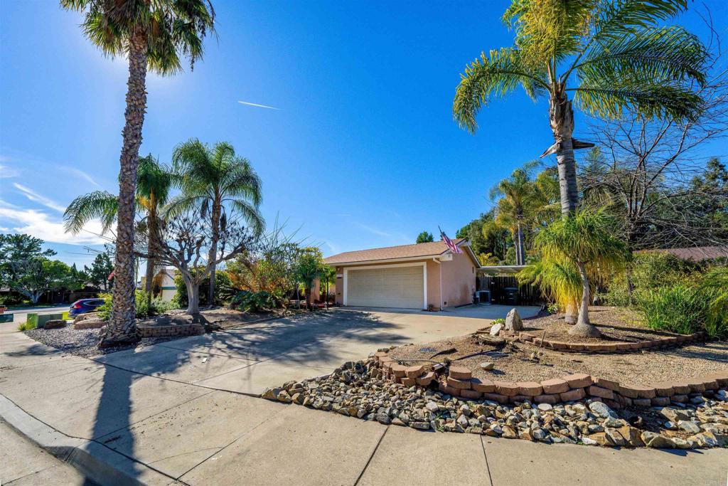 Nestled at the base of the picturesque Mount Helix, this remarkable property awaits your arrival on a peaceful cul-de-sac, offering an ideal blend of serene surroundings. Step inside and be greeted by an expansive open floor-plan that seamlessly connects the various living spaces. The heart of the home is the generously sized kitchen, equipped with stainless steel appliances, an inviting island, and an abundance of counter space, making it a chef's delight. The living room opens graciously with a warm fireplace, creating a cozy ambiance for gatherings or quiet evenings. Adjacent to this, a spacious family room featuring a bar provides an excellent space for entertaining. Illuminate your living spaces with the modern touch of recessed lighting, enhancing the overall atmosphere of the home. The large primary suite offers a private sanctuary, complemented by spacious bedrooms ensuring comfort for every member of the household. For those who enjoy hands-on projects, a dedicated workshop area adds versatility to the property, providing space for creative endeavors and hobbies. Step outside and discover shaded seating areas surrounded by meticulously landscaped gardens, palm trees, and planters. Additionally, delight in the presence of fruit trees, including orange, lemon, and avocado, adding a touch of nature to your backyard. Practicality meets style with a newer roof, ensuring durability and peace of mind. This residence is not just a home; it's a harmonious blend of a fantastic location, thoughtful design, and natural beauty at the base of Mount Helix. Seize the opportunity to make this extraordinary property your own. Call now!