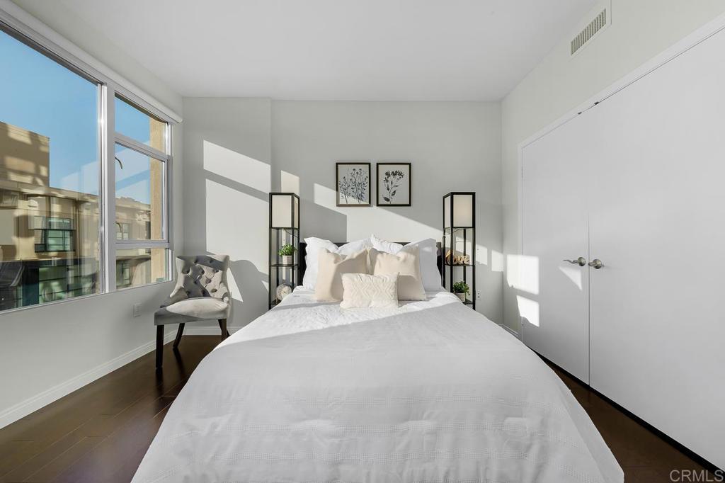 Step into your urban sanctuary in the heart of Downtown San Diego! This stunning 2 bed, 2 bath condo offers 981 sq ft of luxurious living space, flooded with natural light from floor-to-ceiling windows, boasting breathtaking sunset views from every room. Positioned in one of the best corner units, enjoy outdoor views of Petco Park, the Convention Center, and even clear views of the Fourth of July fireworks over Coronado. Despite its central location, revel in surprising tranquility thanks to its elevated floor. Just two blocks from Petco Park, surrounded by premier shopping, dining, and nightlife, with Seaport Village a mere mile away. Parking is a breeze with two gated side-by-side spaces, and 24/7 security monitoring both in and outside the building. Inside, discover upgraded paint, cabinetry, top-of-the-line LG appliances, and a brand-new washer & dryer unit. Building amenities include a private gym, BBQ area, parcel storage, and a nearby dog park. With low HOA fees and unbeatable access to Gaslamp's vibrant scene, this condo offers the ultimate blend of luxury, convenience, and urban living. Don't miss out on owning your downtown paradise!