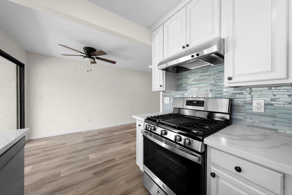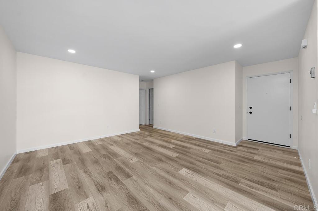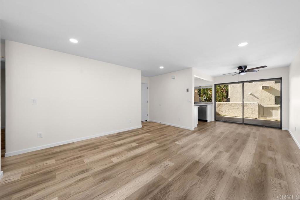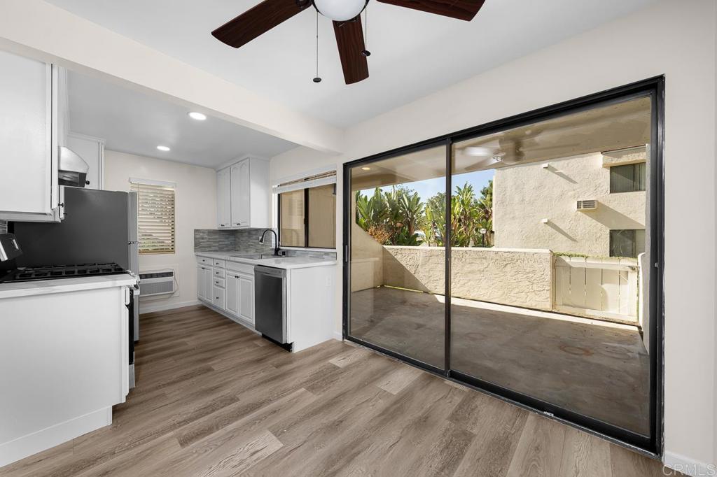Best location in the complex - situated in the heart of Mira Mesa! This completely move-in-ready, lower-level, fully renovated condo offers one bedroom, one bathroom, in-unit laundry, and a bright, open layout. Featuring brand new luxury vinyl wide plank flooring throughout (no carpet) and freshly painted interiors, this unit exudes a fresh, contemporary feel. The remodeled kitchen boasts stainless steel appliances, granite countertops, and beautiful cabinets. The updated bathroom includes custom tile work, tiled floors, and a new vanity for a modern touch. The large bedroom also offers amazing storage space. The unit also has new window blinds, new doors, and a private patio with laundry facilities in the closet - perfect for enjoying tranquil views. Residents can take advantage of resort-style amenities, including a pool and jacuzzi, all set amidst lush, mature landscaping. With one designated covered parking space next to the unit for added convenience, this home is ideally located within walking distance of shopping, restaurants, Mira Mesa Community Park, the library, and more.