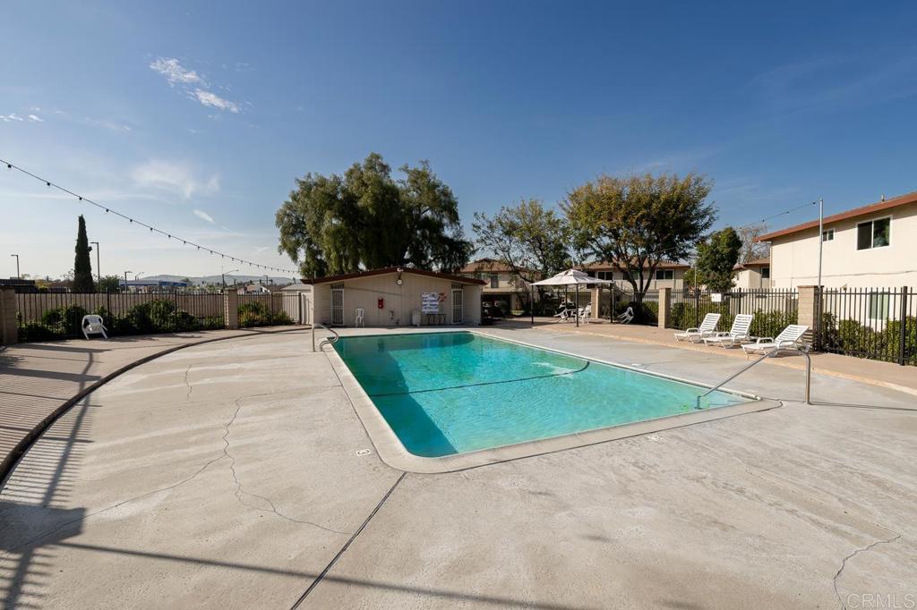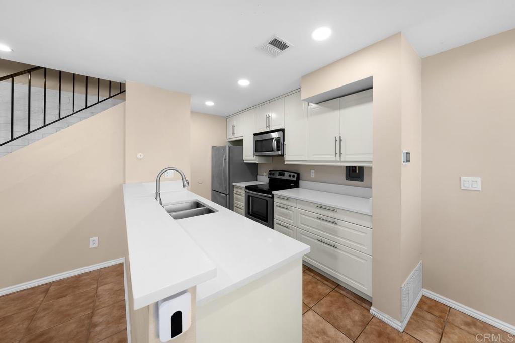 This charming 2-bedroom, 1-bathroom townhome style condo offers a cozy retreat in a convenient location. With 903 square feet of living space, this unit features an open floorplan, perfect for modern living. The updated kitchen boasts sleek stainless steel appliances, quartz countertops, and recessed lighting, creating a stylish and functional space for cooking and entertaining. The bedrooms are adorned with new carpet, providing a comfortable and inviting atmosphere. The newer central air and new vinyl windows ensure year-round comfort and energy efficiency. The convenience of a community laundry area and shared garage with one parking space, along with an additional uncovered parking space, adds ease to your daily routine. Guest parking is also available close to the home, making it convenient for visitors. Residents can take advantage of the community's amenities, including a refreshing pool. Plus, the location offers easy access to shopping, dining, and other conveniences. Don't miss the opportunity to make this delightful home your own!
